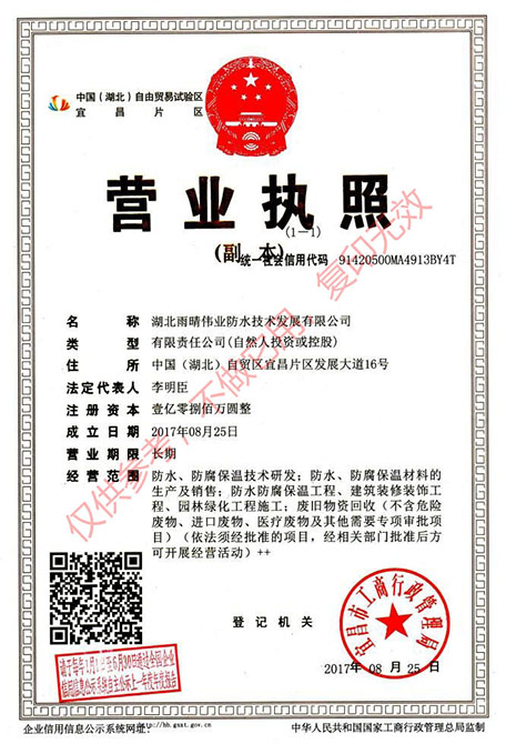 雨晴偉業(yè)在集團公司“致力卓越、見證未來”的強勢理念下,立志做到“雨晴偉業(yè),晴朗世界”;立志研發(fā)“別無我有,別有我優(yōu)”的優(yōu)質(zhì)差異化產(chǎn)品;立志成為高品質(zhì)防水系統(tǒng)引領者,為人類解除滲漏之苦,呵護人類安居生活!